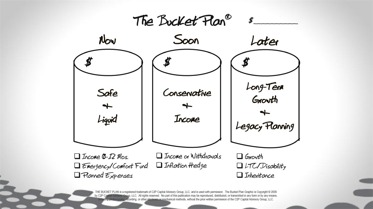 The Bucket Plan helps you manage this risk by making sure you have a strategy for each phase of your life and your retirement. By separating your money into these buckets, you can weather market fluctuations more effectively.